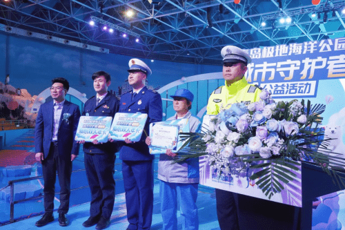 3月31日举行的“城市守护者计划”青岛站启动仪式,青岛市文化和旅游局副局长蔡全记、青岛市公安局交通警察支队政委程万里、青岛市公安局崂山分局局长黄继亮、青岛市消防救援支队政治部主任刘玉振、青岛市委宣传部文明实践工作处二级调研员穆德宝、青岛市崂山区文化和旅游局副局长刘剑等领导和交警、消防、环卫、公交司机代表出席活动。青岛极地海洋公园还授予202路公交车驾驶员田行、崂山环卫工人张玉美、崂山交警大队风景区中队副队长王建林、青岛株洲路消防站消防员姜丰顺为“城市守护者榜样”称号,并赠送全年免费游玩的权益。
