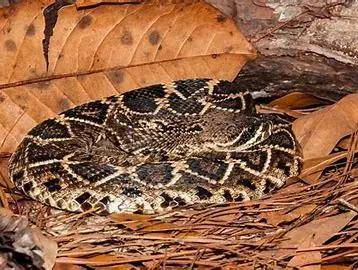 东部背响尾蛇是北美最大的毒蛇。它发现于美国东南部,皮肤上有明显的钻石图案。它的毒液会导致肿胀、疼痛和组织损伤。