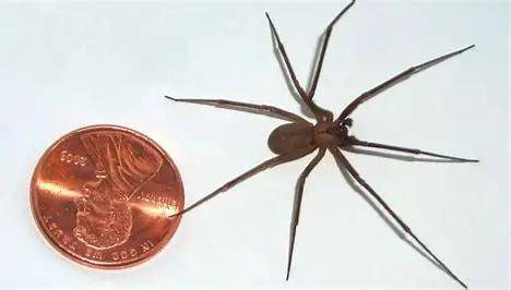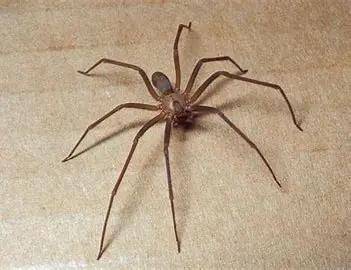 棕色隐士蜘蛛分布于美国中部和南部。它有一个棕色的身体,背部有一个独特的小提琴形状的标记。它的毒液会导致疼痛、坏死的伤口,可能需要几个月的时间才能愈合。