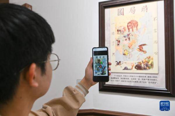 4月30日,游客在梁启超纪念馆内参观时使用智能设备进行AR(增强现实)互动。