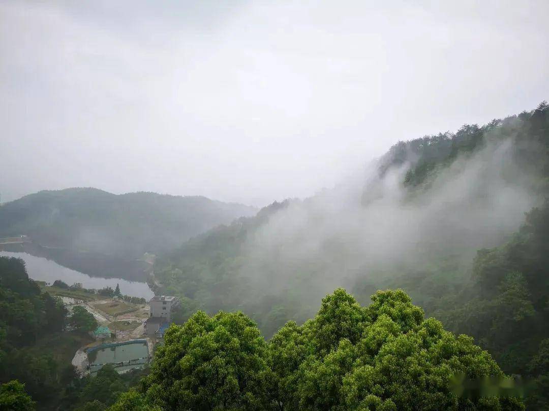 天台水库宛如一颗从天而降的明珠,镶嵌在山谷中。微风轻拂,水面上泛起层层波纹,水畔连绵的山似乎化作一条青龙,意欲腾空而起,为八方百姓行云布雨。