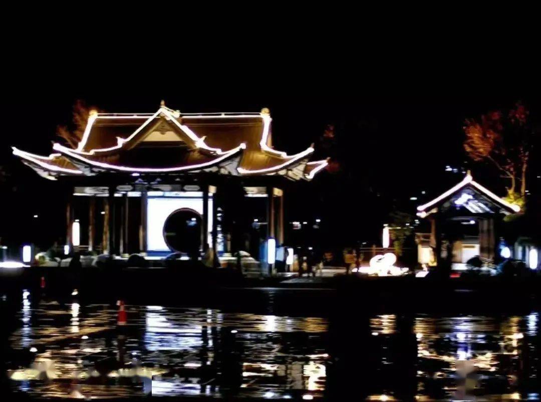 随着花灯广场基础设施不断完善,独具特色的建筑在夜晚熠熠生辉。