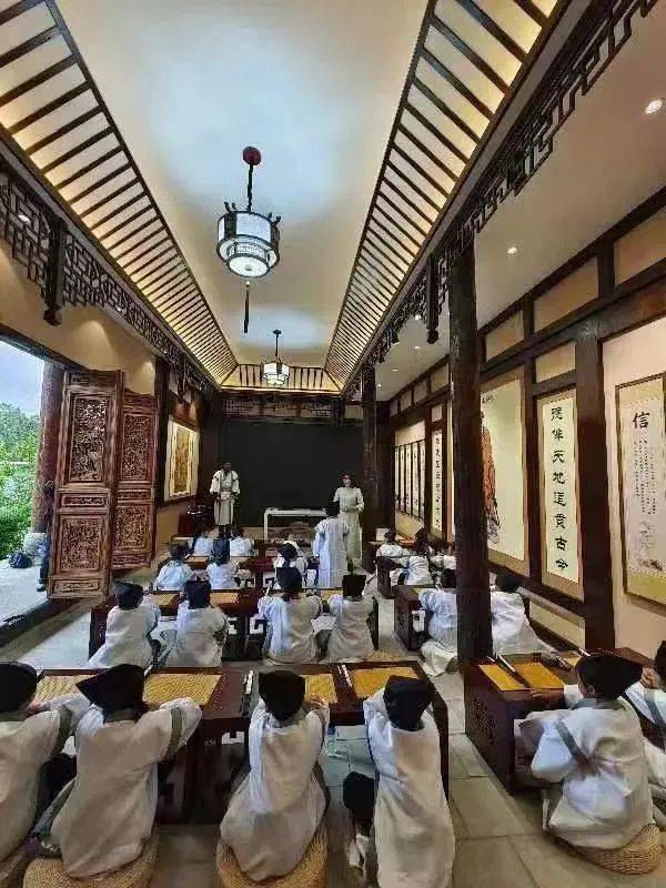 院落以合院为建筑布局,房屋属于古建筑形式,有前、后两院,高低错落。设计以“金木水火土”中国五行元素为出发点,运用到项目中,项目中的“金”运用了现代的结构;“木”作为建筑本体以及周围绿植环绕;“水”在项目中以倒影建筑的方式呈现;“火”以室内外灯光营造氛围;“土”为大地,整个项目坐落于土地之上。使整个项目具有中国历史含义表达。
