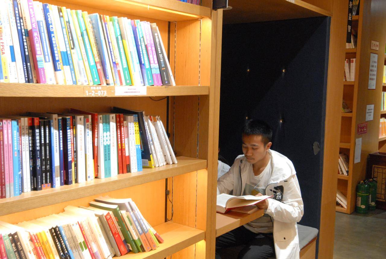 许多市民正在书架前或站或坐,认真阅读和选购,徜徉在书的海洋之中,寻求新知识。其中不乏一些中小学生的身影,他们在家长的陪同下,围坐在书桌旁,有的静静阅读,有的用心记着笔记,一副书香满园的画面。他们或站在书架前的挑选自己喜爱的书籍,或安静坐着品读书香,或聚精会神的写作业……每个人都沉浸在书的海洋里,用读书的方式充实生活,尽享书香假日。