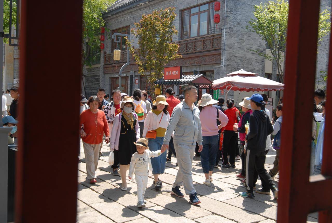 5月1日,人们在山东省青岛市即墨区古城游玩
