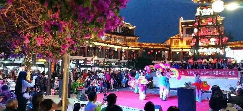 4月30日晚,夜幕下的青螺古坊美食广场灯光绚烂、乐声飞扬,游客们正在兴致勃勃地观看文艺演出。来自弥城辖区和周边乡镇文艺队的精彩表演,博得台下观众阵阵掌声,一次次将现场气氛推向高潮。