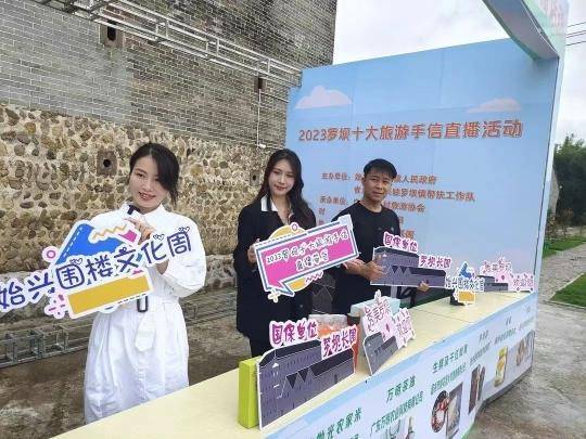 假期前,2023年广东(始兴)围楼文化旅游周启动,以节促旅,近几日游客络绎不绝,现场还设置了“2023罗坝十大旅游手信”宣传展示区,并组织开展“2023罗坝十大旅游手信”直播带货活动,以特色手信带动文旅消费。