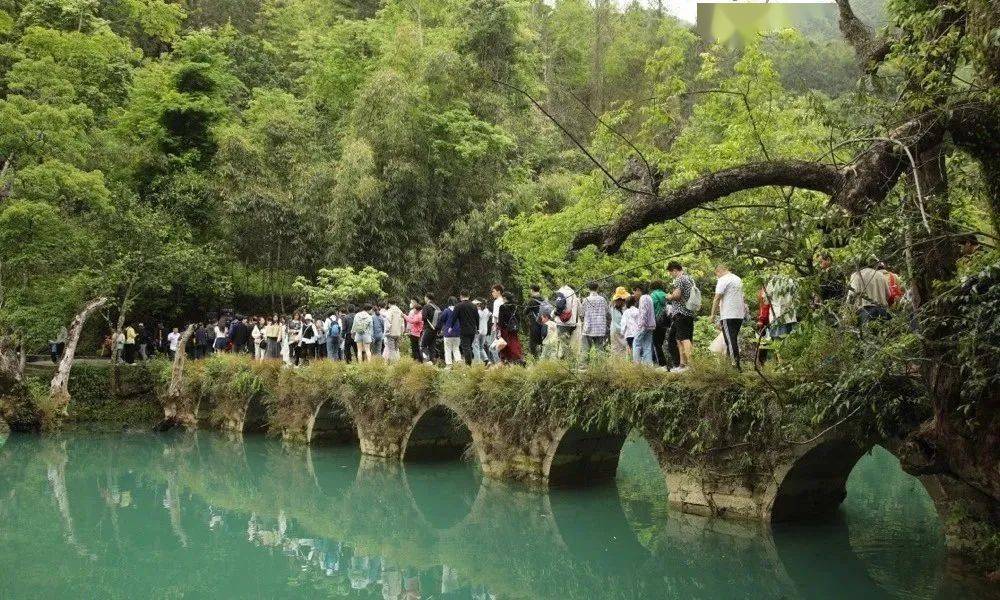 小七孔景区各景点,游人如潮,热闹而不拥挤,秩序井然。蓝天白云、光影交错,八方游客在青山绿水中留下阵阵欢声笑语,呈现出一幅游客入仙境的美丽画卷。