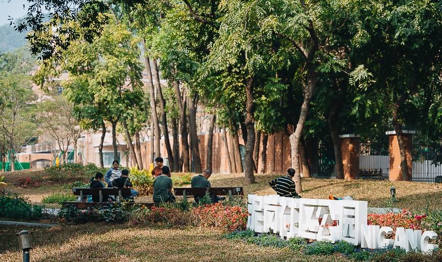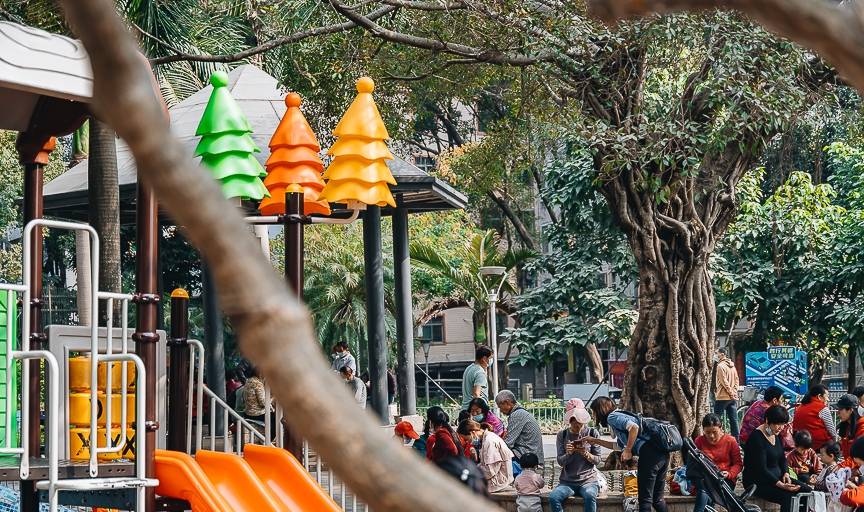 在附近也没有什么特别的公园,所以这个街心花园成为了男女老少休息玩耍的地方。