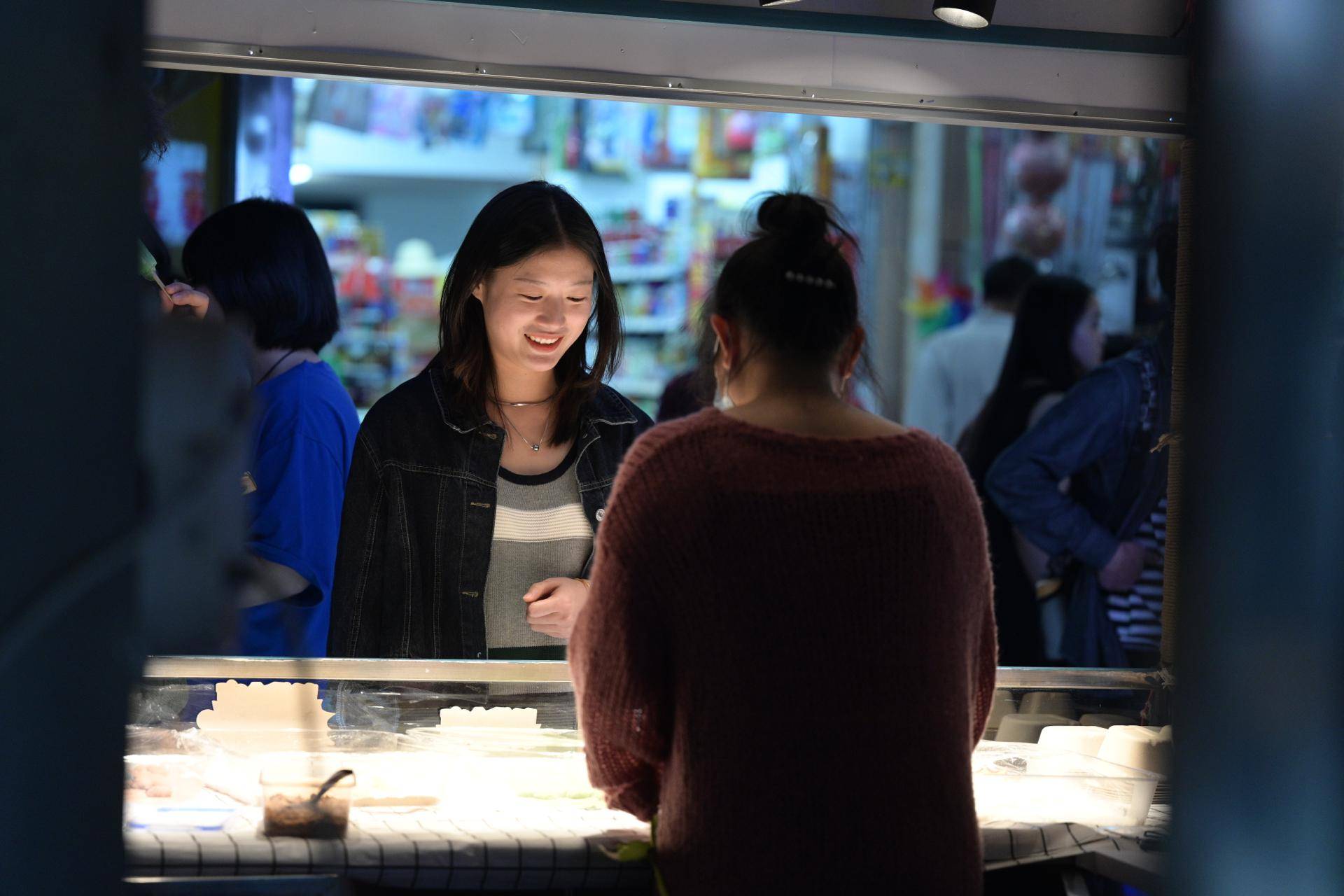 “老板,来4听青岛啤酒!”“老板,有没有哈啤?”夜市里一家批发超市老板的桌上放着一碗凉了的臭豆腐,一直没来得及吃。