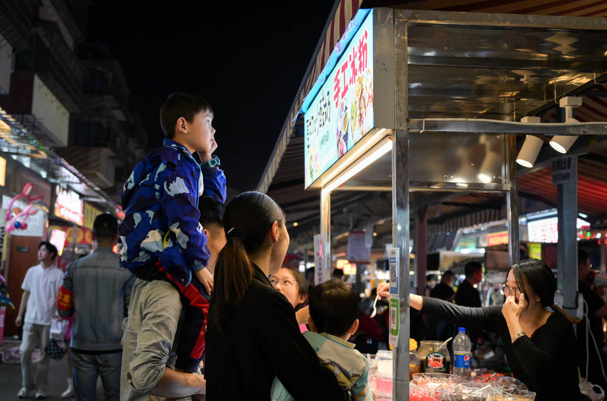 夜市里人山人海。游客们忙着排队,忙着享受食物。摊主们忙着准备食材,忙着抓紧小长假多赚点钱。