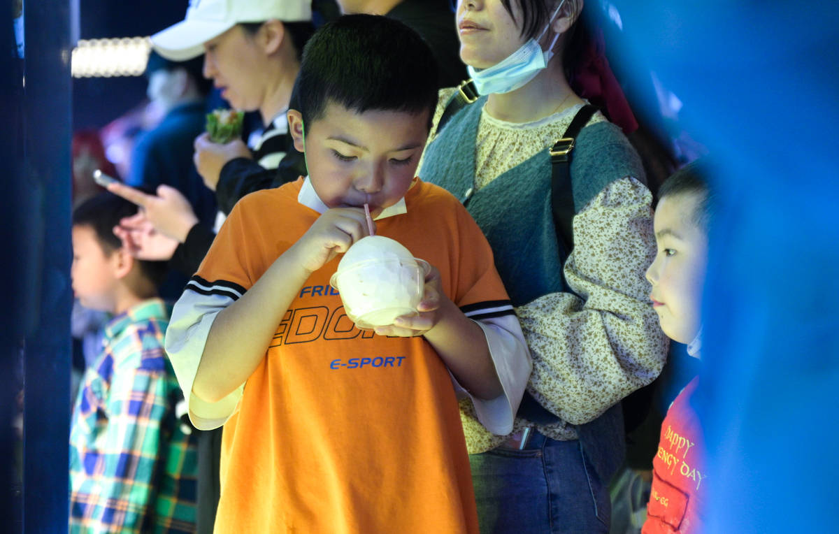 赵先生来自江苏,这次带着爱人孩子一起来到长沙游玩。“刚下高铁就被人群给震撼到了,来到夜市更是大为震撼。”赵先生说,他自己想吃烧烤,孩子想吃甜品,爱人想喝奶茶,本来想着在夜市里分头行动,但夜市里人山人海,他们只能一家三口抱团行动。“如果分散,估计打电话都听不到。干脆抱团行动算了,排到什么就买什么,虽然排队等待的时间会长一点,但把东西吃到肚子里后,就感觉排了这么久的队伍还是值得的。”