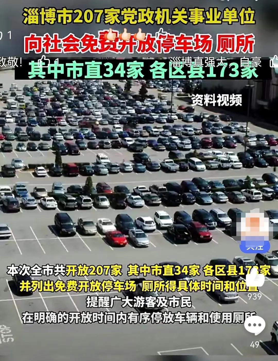 由于“进淄赶烤”的游客太多,为了解决游客停车和如厕的问题,淄博市要求具备条件的全市207家党政机关事业单位,向社会免费开放停车场、厕所,还提醒游客错峰出行,享受更完美的体验。