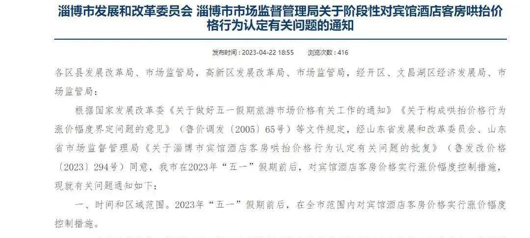 接二连三的措施出击让我们看到了淄博市政府的诚意,4月22日,淄博紧急出台了关于阶段性对宾馆酒店客房哄抬价格行为认定有关问题的通知,直指到来的五一旅游黄金周淄博烧烤节的涨价行为,高不高效,负不负责,当不当回事,心在不在,全都在这个通知里面体现了!这就是创城、创卫的精髓,这就是创建文明、卫生城市该有的样子!