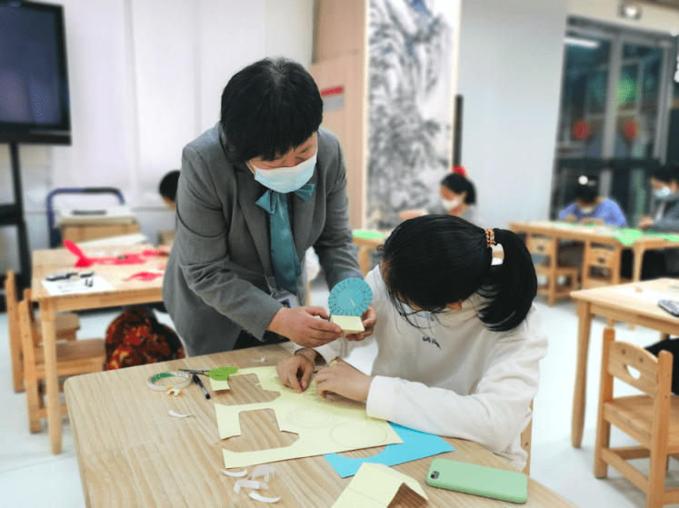 除了展厅延时开放,观众还能亲自上手体验有趣的互动项目。17时30分,在首博地下一层纸艺空间,一场别开生面的日晷手工课正在进行。首博“芳华讲解队”队员赵静荣从日晷的起源、用途、分类、原理讲起,并拿出彩纸、剪刀和尺规,带领孩子们动手制作赤道式日晷,绘图、裁纸、折叠、粘贴……课堂上的10名小朋友忙得不亦乐乎。“制作日晷既能增长知识,又能培养动手能力,孩子们都非常喜爱。”赵静荣说。
