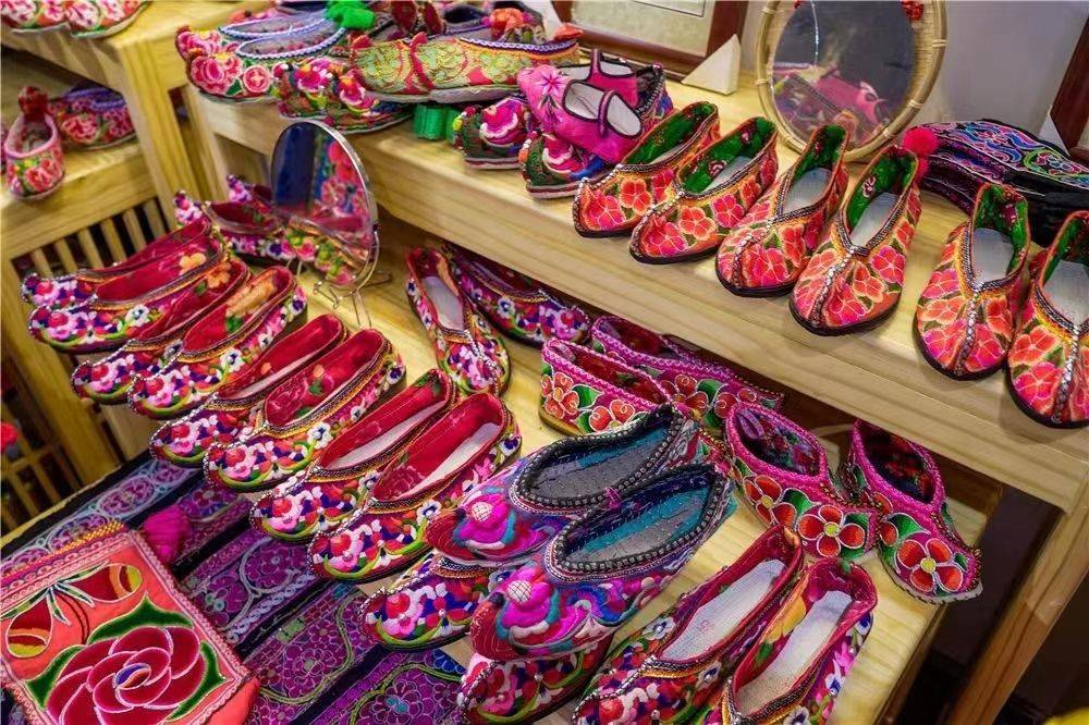 巍山创建美丽县城、特色小镇等一系列建设开展得如火如荼,是巍山县非遗保护难得的机遇,也是非遗保护工作的巨大挑战。巍山因地制宜,挖掘非遗资源,打造特色旅游街区。开辟以中国历史文化名街南诏古街为“非遗+旅游”的实验中心,抓住机遇,整合资源,初步建立了以传统技艺类非遗为主打的南街扎染刺绣主题街区,实现非遗资源和传统民居相得益彰的资源优化,激发具有巍山特色的“非遗+旅游”新活力。随着大理文化生态保护区建设的不断加快,先后在南街设立了“非遗+旅游”示范点、巍山扎染技艺传习所、巍山布扎传习所、刺绣传习所等非遗传习所,体现了“见人”“见物”“见生活”的非遗保护理念。