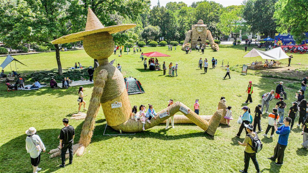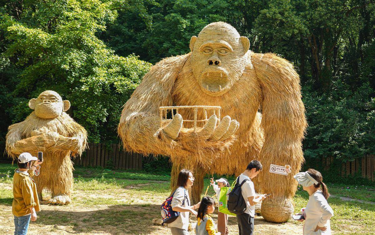 5月1日,众多游客前往中科院武汉植物园,走进该园武汉巨型稻草人王国展览,感受中科院武汉植物园倡导的“人与自然和谐共生”之美。