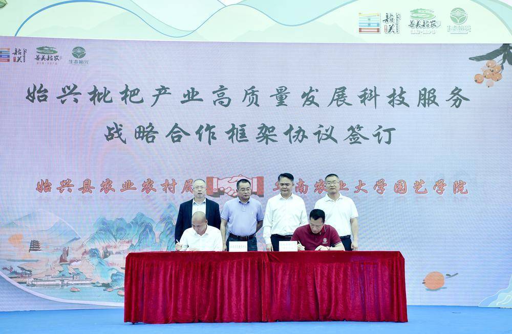 随后,始兴县与华南农业大学园艺学院共同签订了始兴枇杷产业高质量发展科技服务协议,从新品种和新技术上为始兴枇杷产业高质量发展赋能。现场还邀请了枇杷采购商与始兴县枇杷种植农户开展产销对接,并签订了采购意向协议。