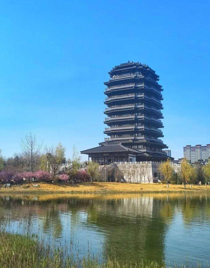 话说在淄博,齐盛湖公园的地位应该跟济南的大明湖差不多,湖中央的“海岱楼钟书阁”也和“超然楼”一样出名,周末也是要限号排队滴。