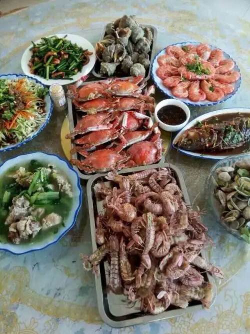 咱们家里也包吃包住的海鲜,每个人只需要100-150, 就可以连吃带住,,三餐加住宿都管,四个人以上就可以饱餐连吃带住啦,,还有海鲜大咖哈~~