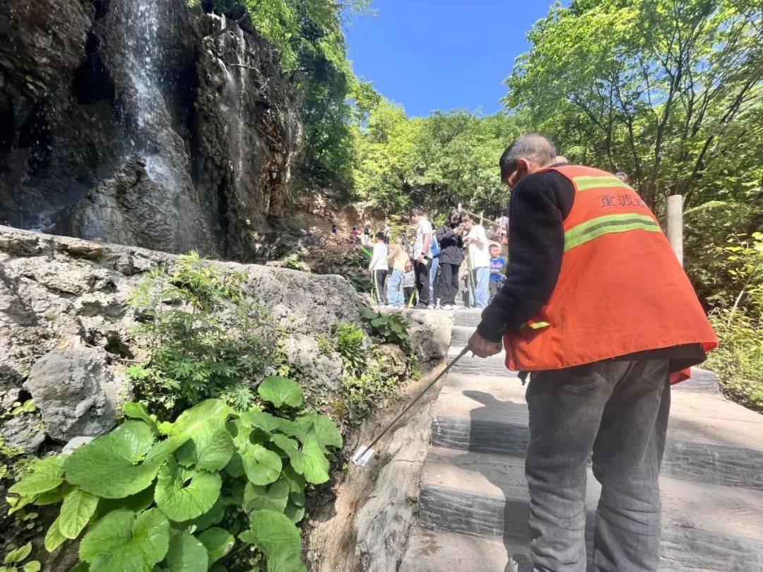 当游客正在重渡沟欣赏这大美风光的时候,景区的工作人员们始终坚守岗位,努力为每一位游客的旅游安全和旅游体验,贡献出自己的一份力量。