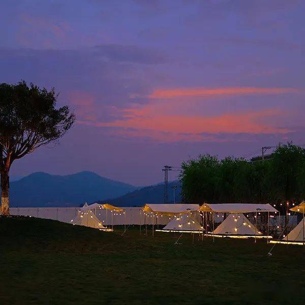吃累了怎么办?还有什么能比露营更适合的呢?一个个帐篷在草地上搭起来,仿佛一个新成立的小村落,将露营氛围感拉满!超超超大草坪,可以肆意奔跑,追逐~坐在帐篷前,欣赏美景、喝茶,十分惬意~苍穹之下,蓝天为幕,大地为席,露营的乐趣不过如此!