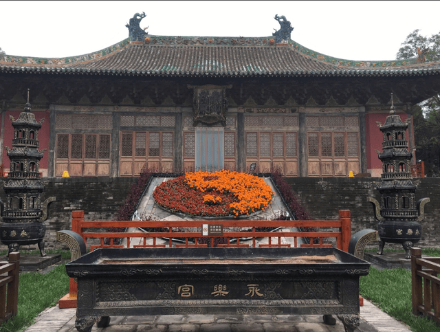 永乐宫,始建于公元1247年,是为了纪念八仙之一的吕洞宾而建,共用了110多年才修建完工,是现存大的元代道观。永乐宫原建在芮城县城以西的永乐镇,建国初期由于水库工程而搬迁到现在的位置。永乐宫游玩起来非常方便,当你进入大门后,沿着中轴线由南至北向前步行游玩即可。