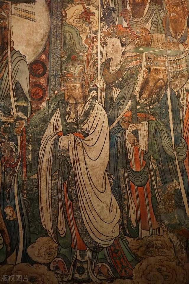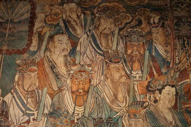 壁画中一共画出了290位神仙,八位主神竟然高达3米,低的玉女也在2米左右,构图宏伟,气势磅礴。当你观赏这幅壁画时,一定要多注意其中的人像。对画中人物的刻画,是壁画成功的部分。290位神仙,姿态各异,各有特征,表情生动,衣冠服饰等没有一个是相同的。