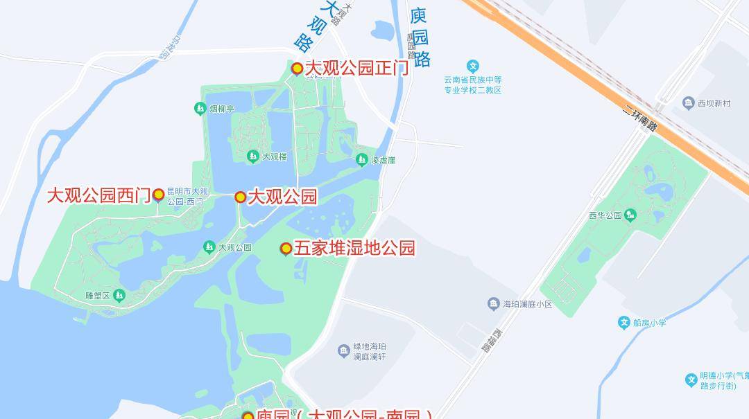 昆明大观公园南园位置图: