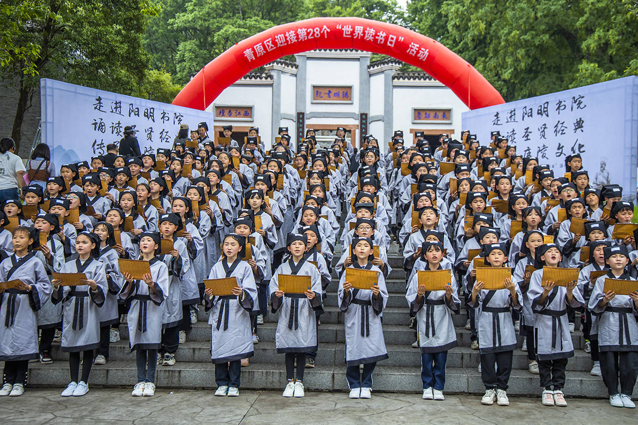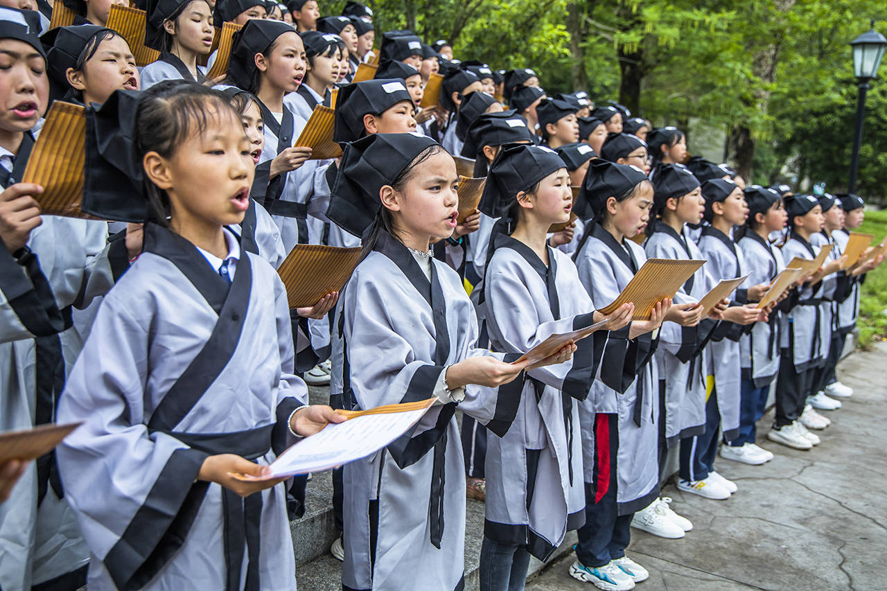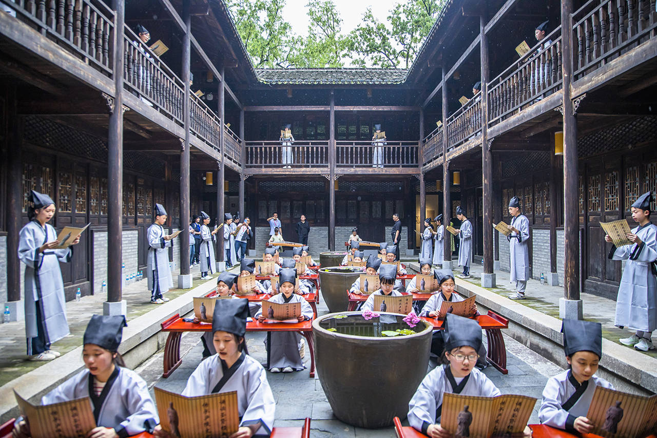 来到阳明书院,恰逢吉安的学生来到这里研学,这是书院依然沿承传统,时常举办讲学活动,所以经常会有当地学生来此进行研学。只见孩子们都身着古装、手捧古卷,在阳明书院里朗朗而读,声音响彻书院,生生不息的传承就在这里一代代的的传承下去。