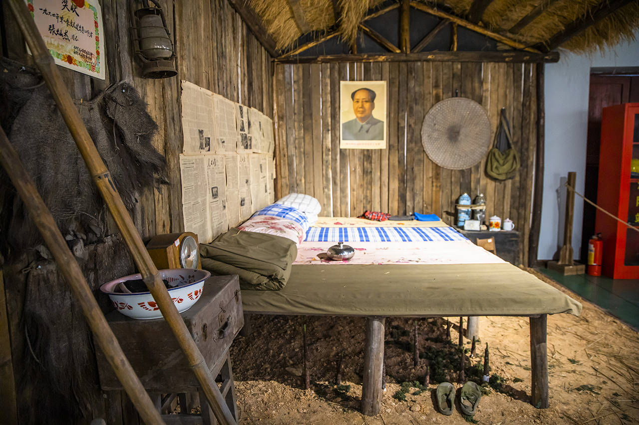 知青所到之处都是生活条件相当艰苦的地方,展馆内再现了当时的生活场所。简陋的木平房、黄土地面,四条狭窄的木床紧紧靠在一起