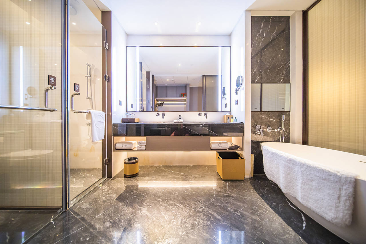 酒店房间空间很大,视野开阔,入住大床房也都配有浴缸。超大的卫浴间,双洗手台和双面镜子设计,还有化妆镜设计等等,细节之处都很打动我,实在太适合女生入住了!