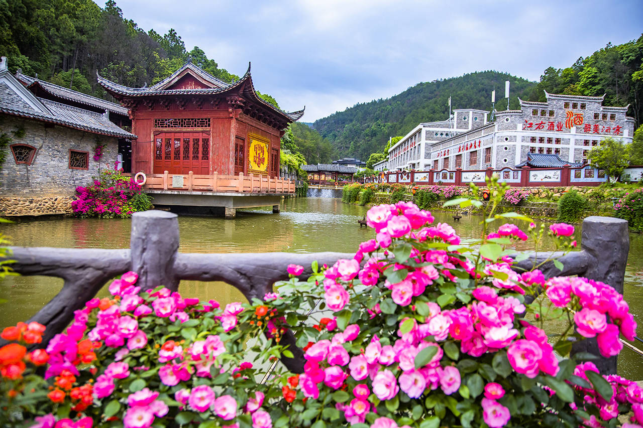 江西吉安旅行,朋友特别推荐了一个叫做江右酒寨的地方。位于吉安青原区富滩镇张家渡青东公路旁。虽说是叫寨子,但是里面的景色却绝对不输景区景点,从一进门就绽放的满园鲜花,一条碧水曲折环绕,绿色清幽十分惬意。
