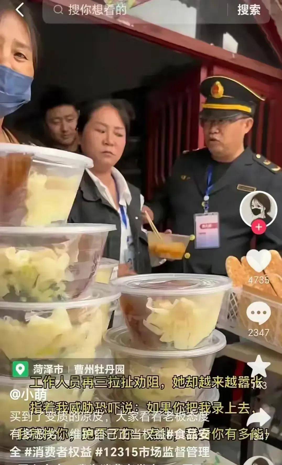 网上视频只有买凉皮的指着来旅游的顾客大骂的那段,很多人可能还听不太懂。视频播放的是顾客觉得凉皮有味道,要退钱。不知道什么原因,店主:不给退,你告我去有本事,然后问候他妈。