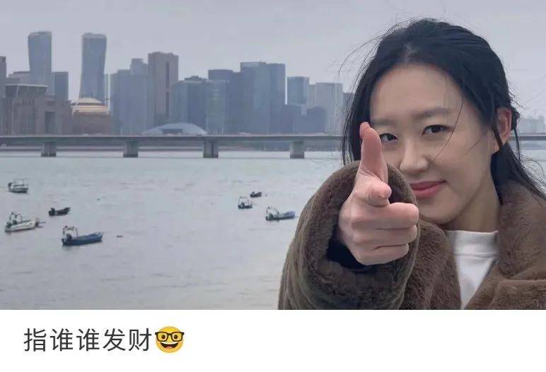 站在杭州钱塘江边伸出手来: “指谁谁发财。”