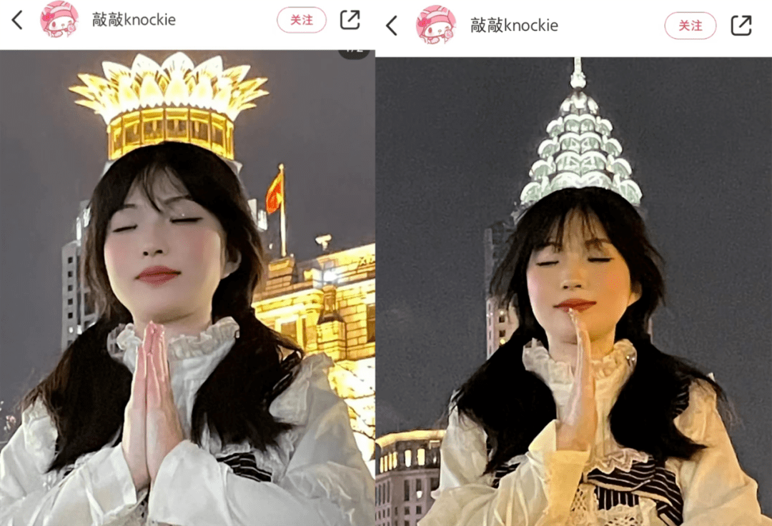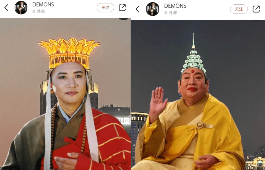 上海外滩的打卡潮流,起因是网友 @DEMONS意外发现,周边几栋楼的设计,仿佛是从《西游记》剧组偷走了唐僧的帽子与如来佛的假发。