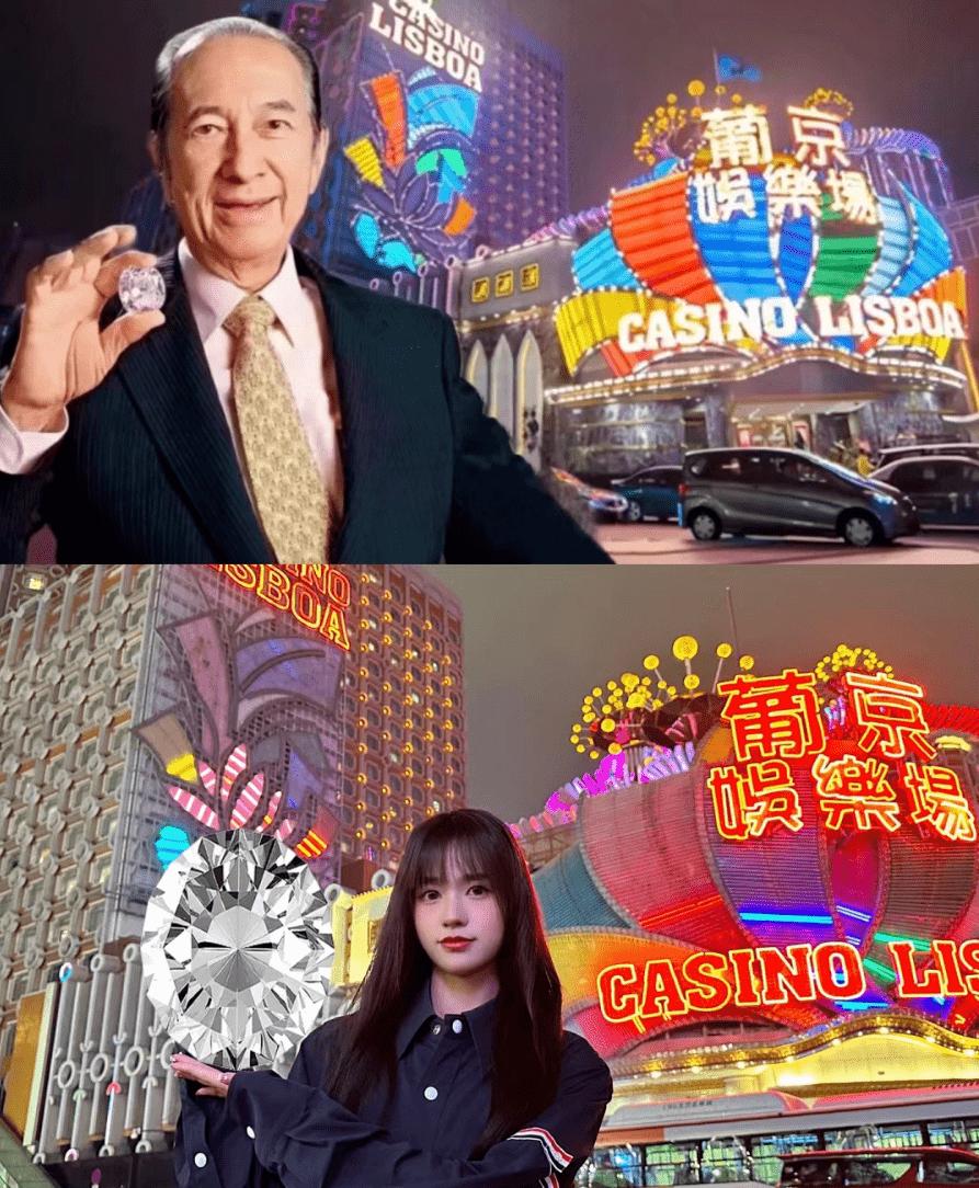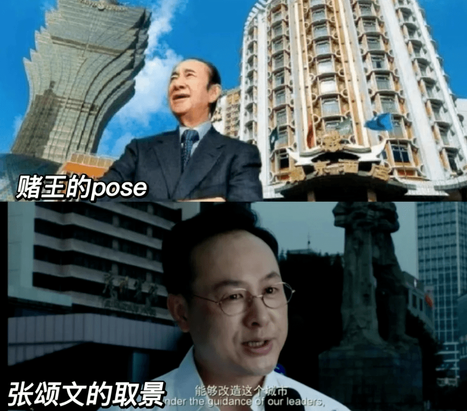 模仿完李嘉诚,转头又跟着“赌王”何鸿燊,在澳门最繁华的地界上点头微笑。