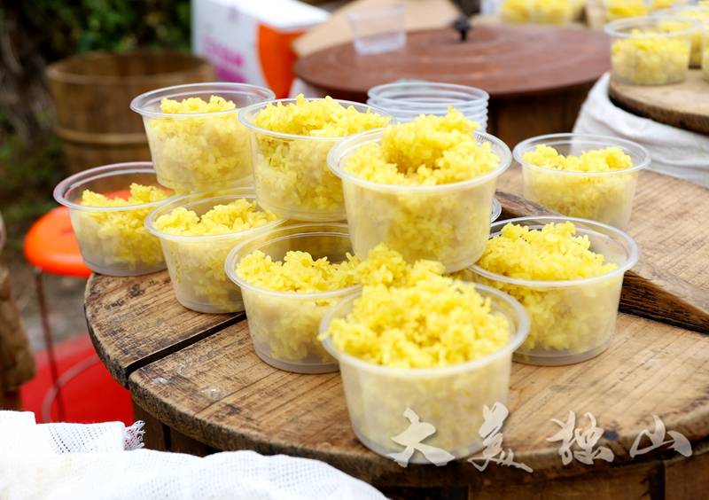 据了解,黄饭节是旗山村摆独水族群众独有的节日,每年农历三月的第一个“羊”日,摆独村民都会用黄饭树花汁水浸泡糯米,蒸出黄色糯米饭,并煮上红鸡蛋,配以腊肉、蕨菜等,盛情邀请嫁出的女儿及亲朋好友共同过节,并举行文艺表演、对山歌、抓鱼等活动,祈祷来年风调雨顺、五谷丰登。