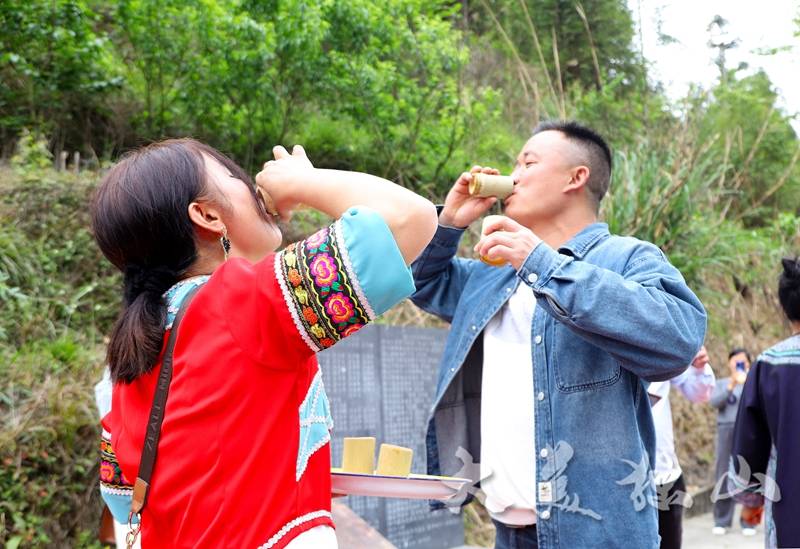 “远方来的客人,欢迎来到我们摆独水族黄饭节,快来尝一尝我们的米酒和黄米饭......”