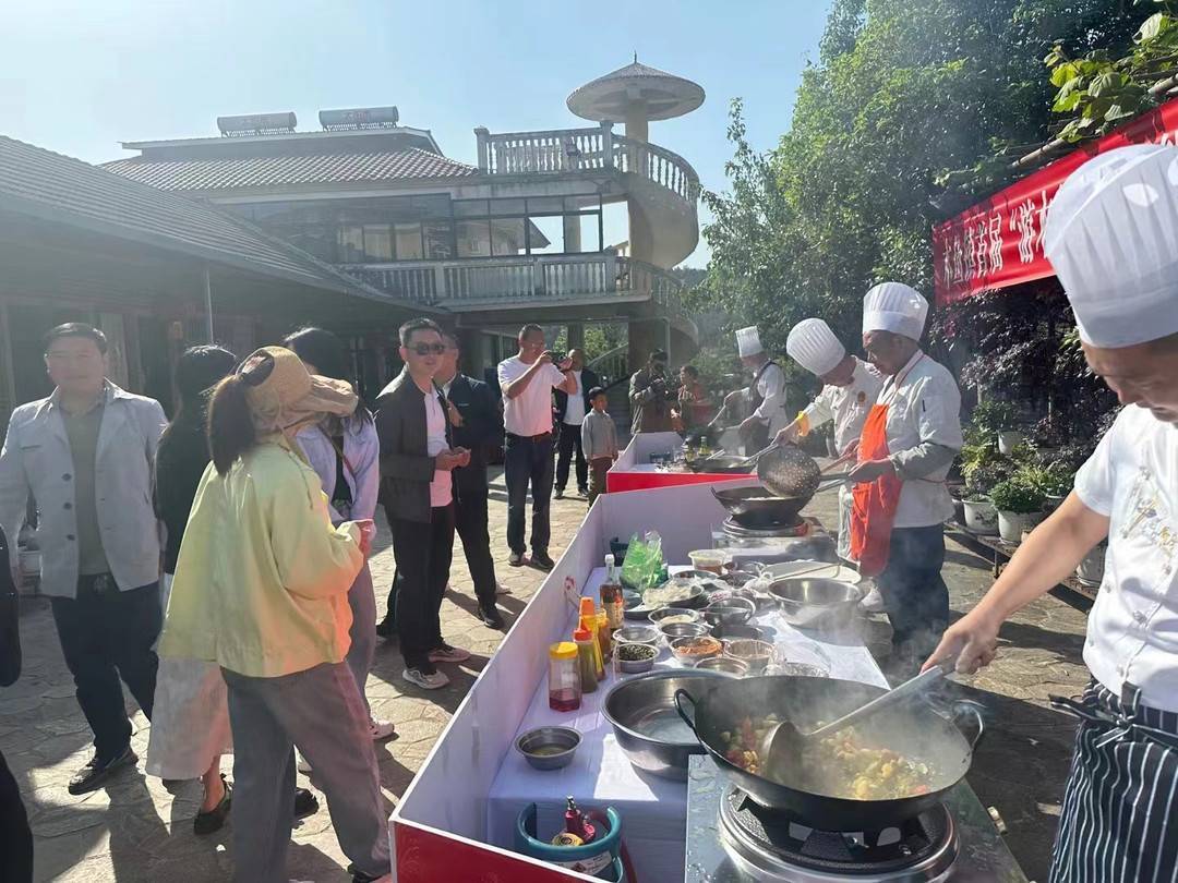 来自该镇知名的满堂红、老四川饭店、太安鱼庄、马家大院四家知名饭店分别派出了一名厨师现场为游客烹饪美味湖鲜。活动中,大厨们在炉灶前“火力全开”,煎炒蒸煮,各展绝活,烹饪现场鱼香四溢,很快便制作出了回锅鱼、粉蒸鱼、藤椒鱼、藿香鱼、豆豉鱼、剁椒鱼头、椒麻鱼等八道不同种类和味型的美味佳肴。