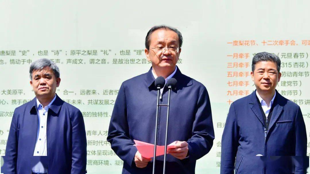 马志强做了热情洋溢的讲话,他首先代表中共原平市委、原平市人民政府,对远道而来的八方宾朋表示最最诚挚的欢迎。“牵手原平 爱在木图”“五一”期间举办中国•原平•爱木图牵手大会青年人才 “五一”婚恋专场和原平市乡村振兴文旅产业大会,希望能够以这两个大会为切入点,点、线、面立体呈现诗画原平、礼俗原平、活力原平、幸福原平。希望能够通过原平的活动展现原平风采、讲好原平故事、扩大原平影响、优化营商环境、凝聚发展共识。按照省委省政府和忻州市发展专业镇工作要求,原平将精心打造“一节一会”,(也就是一年一个梨花节、一月一次牵手会)把牵手大会打造成原平金名片、知名文化品牌。把爱木图景区打造成最美婚恋产业专业小镇,助力乡村振兴产业发展。通过我们的努力,要让爱木图“爱在原平、木可成舟、图正帆悬” 理念,形成新的发展能级。
