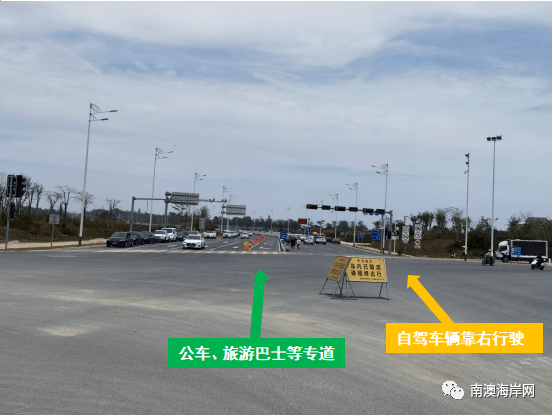 为解决进岛车辆停车问题,今年五一南澳大桥莱芜侧设有可停放1500辆汽车的停车场。自驾至东海岸进岛红绿灯路口的时候需要进行变道通行。