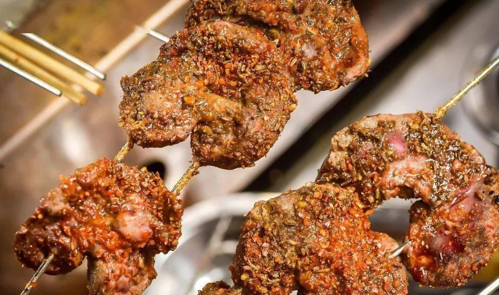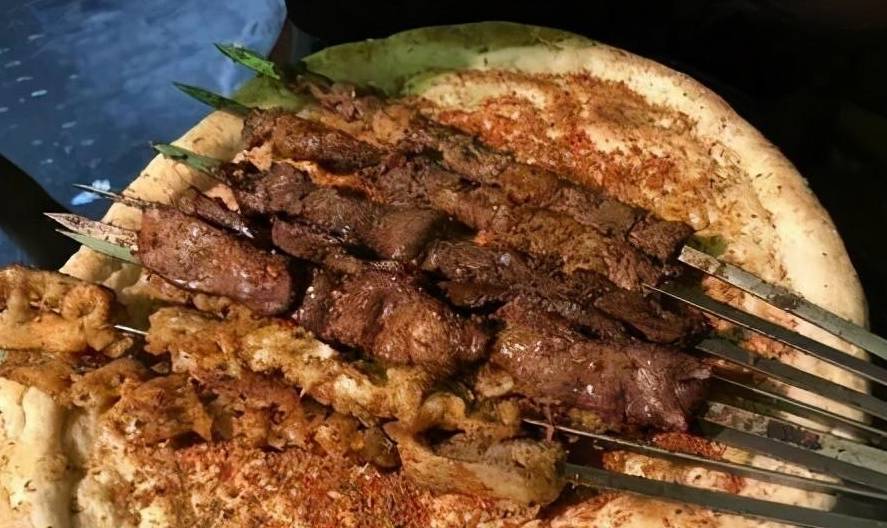 新疆当地的烤串基本以牛羊肉为主,佐料以孜然为主,能吃出牛羊肉的肉味,而且肉量较大。
