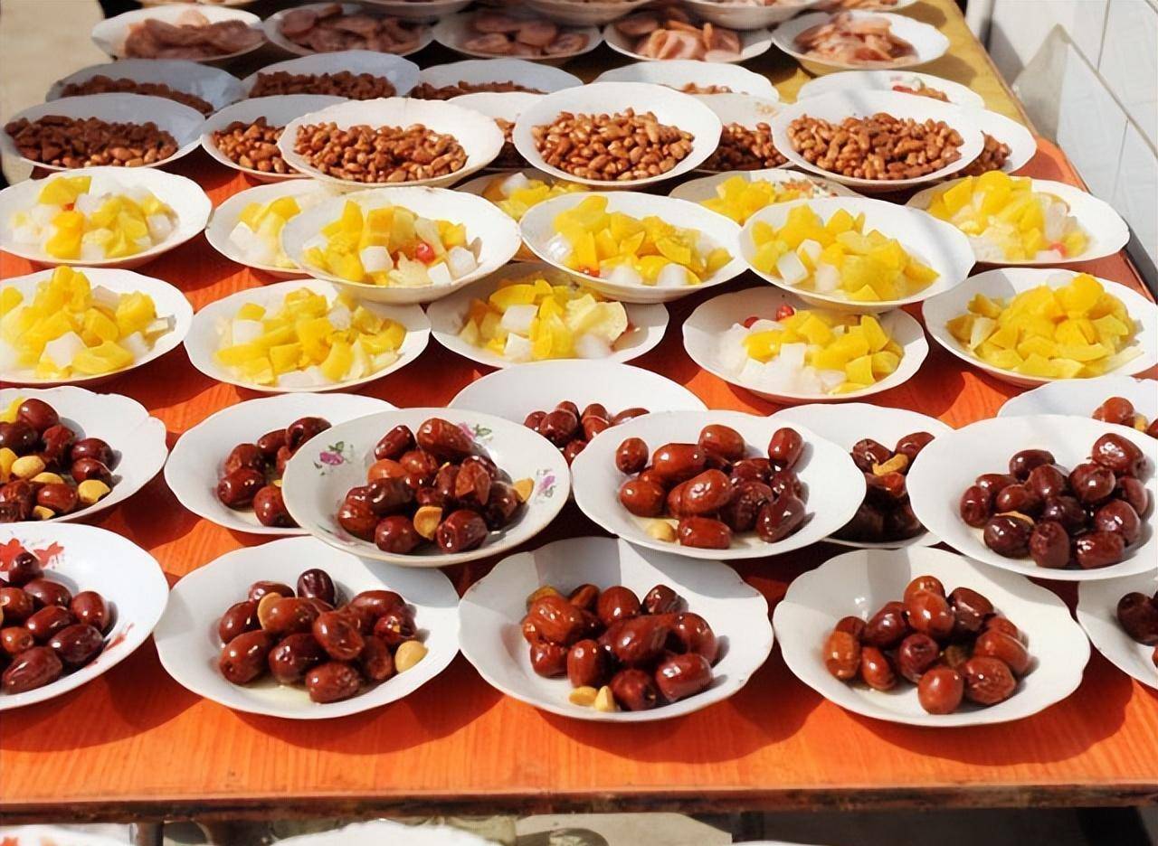 之后再根据季节,上点儿什么芹菜炒鸡胗、腰果虾仁、炖排骨、爆炒猪肚、干煸芸豆、京酱肉丝等特色菜,最后再上点儿羊肉汤、金针酸汤、丸子汤等汤品,这喜宴算是齐活了。