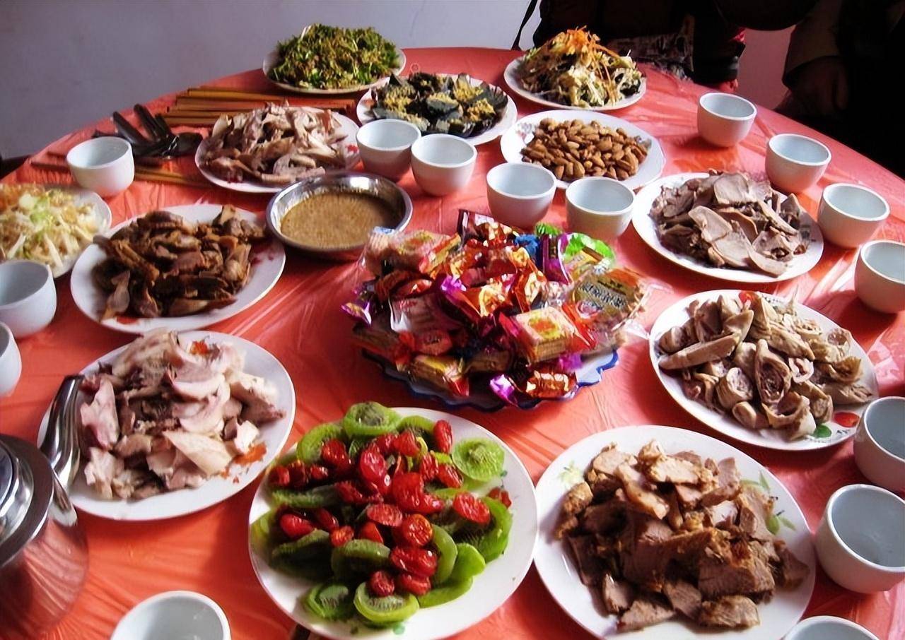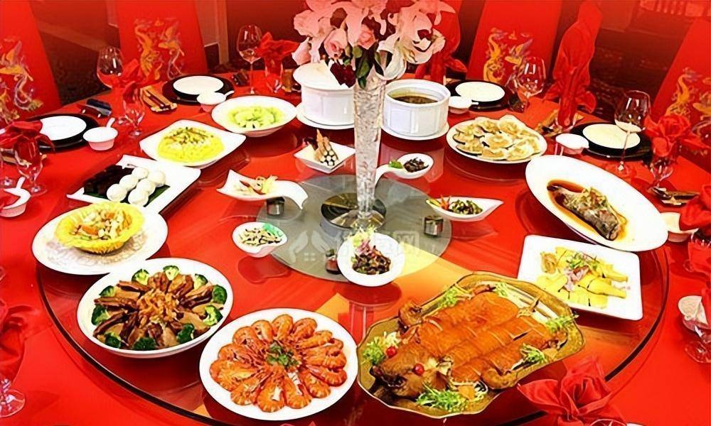 山东的喜宴突出一个味美汤鲜,酒宴上要肉有肉要菜有菜要汤有汤,一般常见的菜品有五香扒鸡、油泼鱼、大肘子、葱拌牛肉、羊肉羊肚冻、麻辣龙虾、盐水大虾、糖醋里脊、四喜丸子。