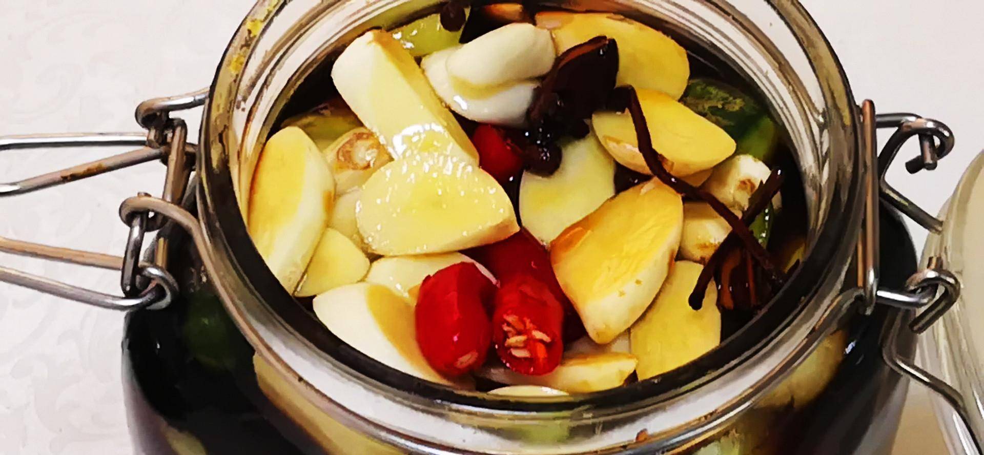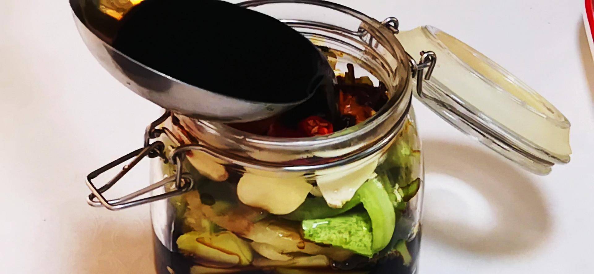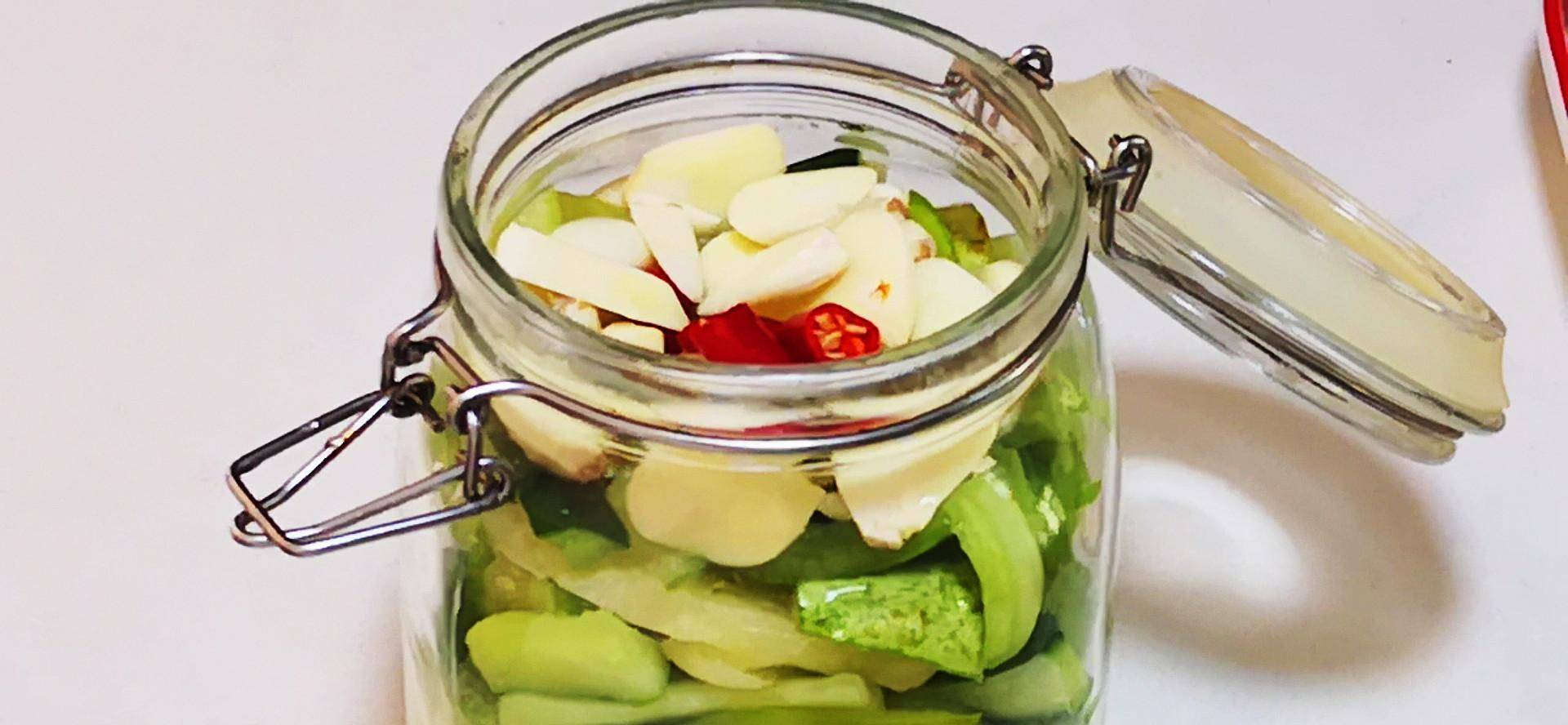 5、将控干水分的黄瓜放入一个无油无水的罐子里,再放点蒜片,姜片,小米椒圈,然后再倒入凉透的酱料汁,最后再放点高度白酒,这样黄瓜储存的时间会更长。密封保存起来,放入冰箱保鲜里存放,一到两天就可以吃了。黄瓜这样做是不是很简单,0小厨也能做出来,这样做的黄瓜清脆爽口又好吃,能从夏天吃到春季,随吃随拿特方便。