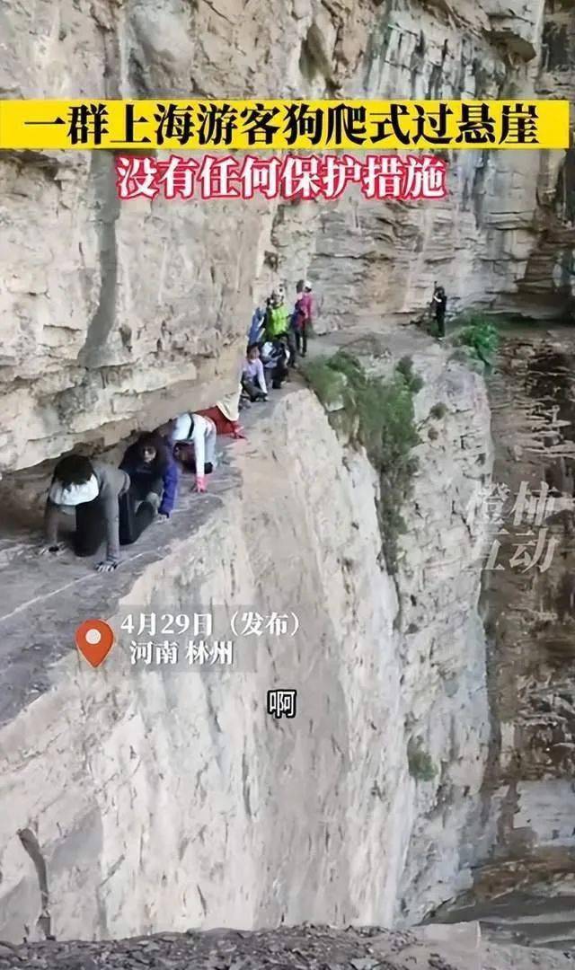 四肢着地爬行事小,一旦一个不小心翻滚滑落就出大事了。显然,导游也并非不知道,在视频中还在提醒大家:“这段路很危险,爬过去就没事了”。只不过,他有没有考虑过,万一有人爬不过去呢?万一出现意外,该由谁来承担后果和责任?