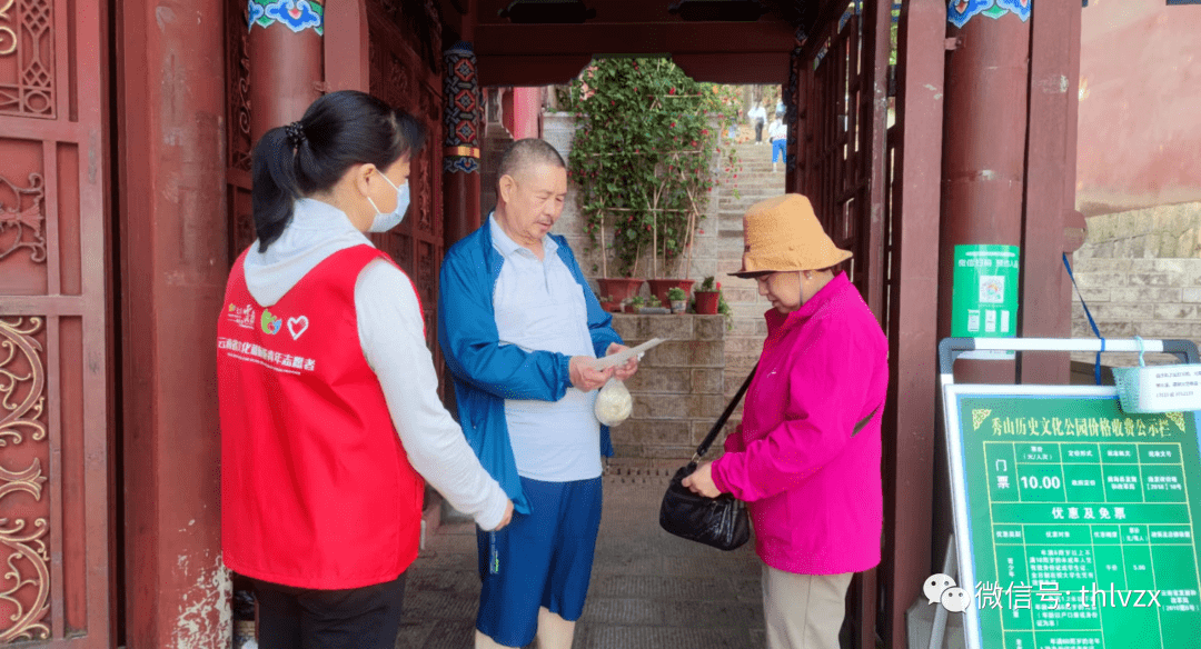 一件红马甲,一颗火热心,一抹志愿红,一道好风景。五一小长假期间,秀山公园迎来客流高峰,秀山公园文旅志愿服务队在景区开展形式多样的文明旅游志愿服务。