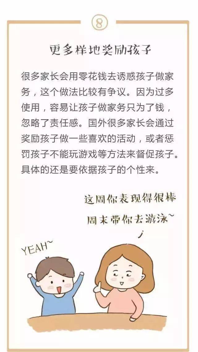 夸奖比金钱奖励更有目的性,是很好的鼓励方式,对于孩子的帮助,多表示感谢,孩子会很积极。