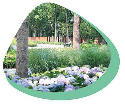 上海市曹家渡花园内,绿化景观富有层次。上海静安园林绿化发展有限公司提供
